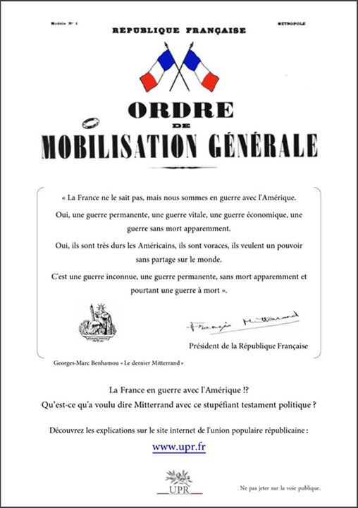 C’est pourquoi, en ce 25 mars 2007, j’avais créé l’UPR, pour appeler les Français de toutes origines, opinions et convictions, à se rassembler afin de libérer notre pays de ce piège stratégique conçu outre-Atlantique et vieux d’un demi-siècle.