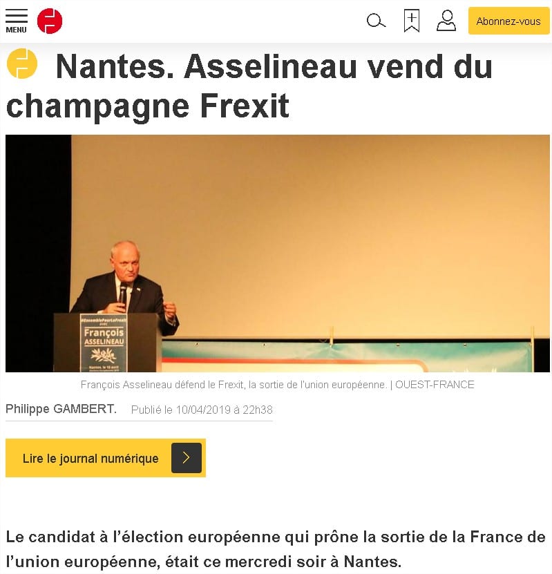 À l’occasion de la troisième édition de la « Journée de l’Europe », organisée par l’association étudiante Tribunes de l’ESCP Europe, François Asselineau fait partie des personnalités politiques et des experts économiques conviés pour débattre de la situation actuelle de l’Europe et son avenir.