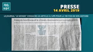 Nous en profitons pour vous annoncer que nous organisons actuellement une première grande rencontre inter-régionale des adhérents et sympathisants de l’UPR. Celle-ci se déroulera à Avignon au début du mois d’avril (un week-end). Nous vous en dirons plus très prochainement.