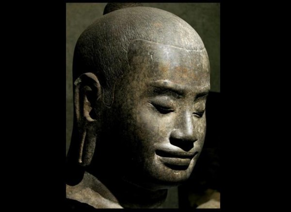 Jayavarman VII, qui fut le dernier grand roi de l’empire khmer, régna à Angkor de 1181 à 1201 environ. Son buste, qui constitue l’un des joyaux des collections du Musée Guimet à Paris, compte parmi les chefs-d’œuvre les plus accomplis de toute la statuaire universelle. Cette sculpture de grès appartient au style du Bayon (fin XIIe-début XIIIe siècle) et fait montre d’une grande expressivité, bien que toute de retenue. Sur les lèvres du monarque flotte le célèbre « sourire d’Angkor », qui témoigne depuis huit siècles de la sérénité de son âme et de son indicible grandeur.